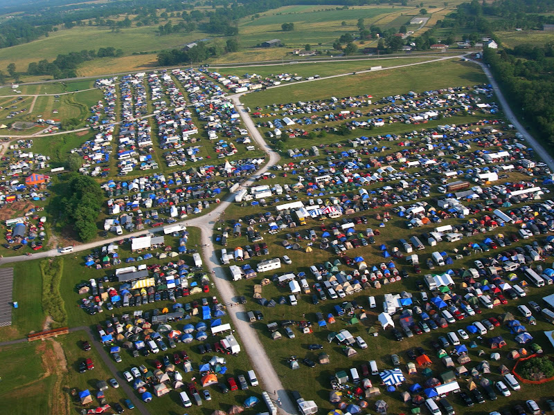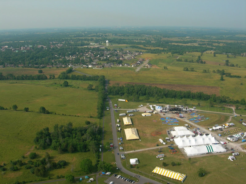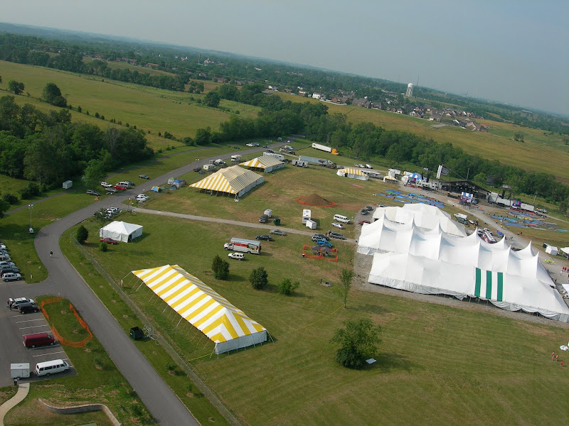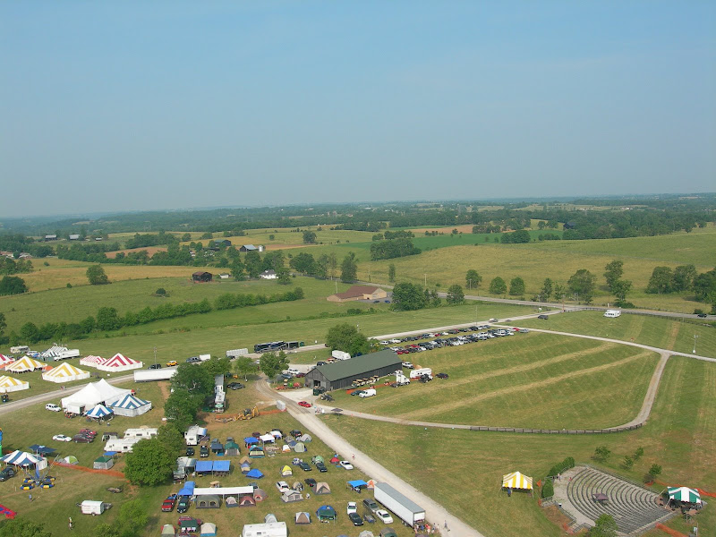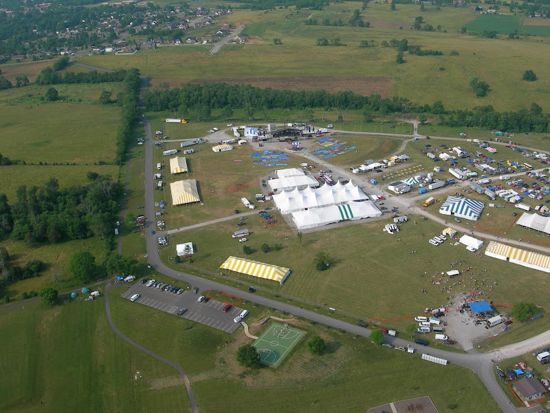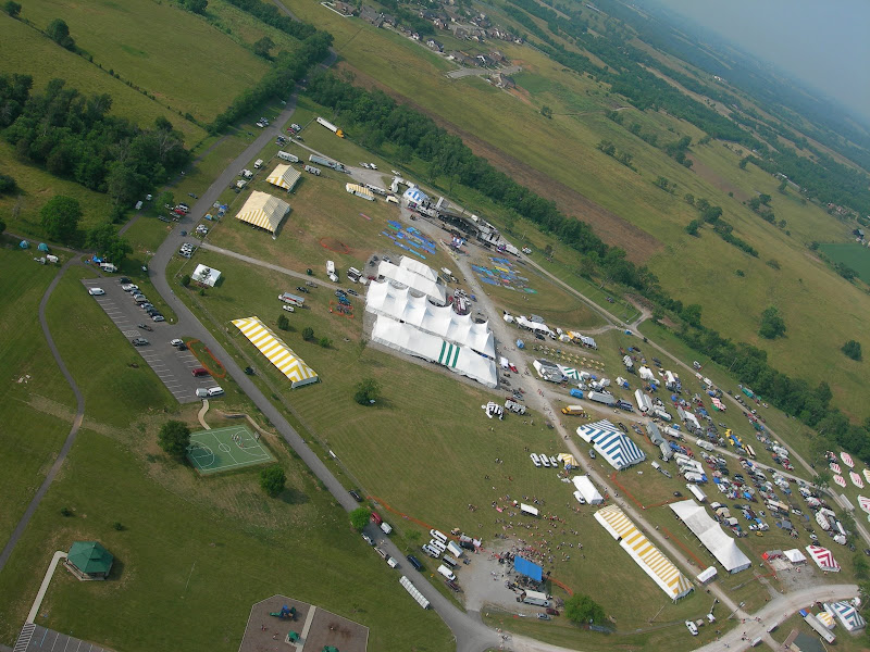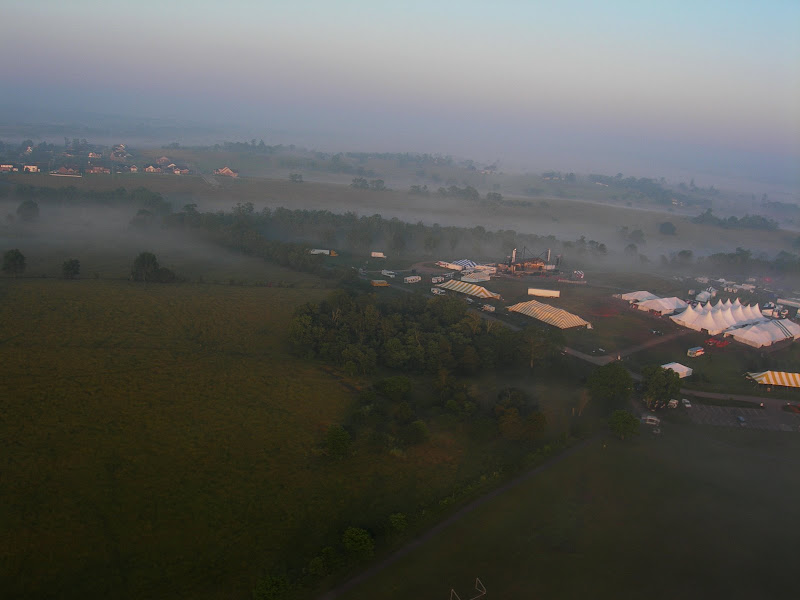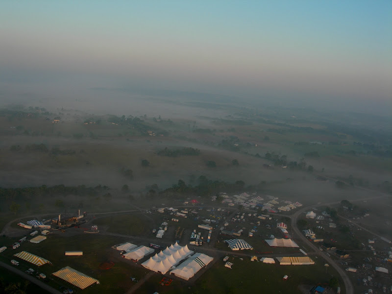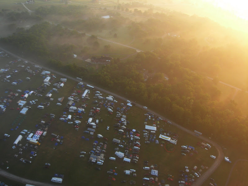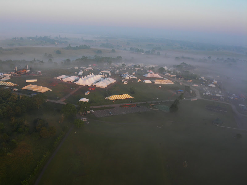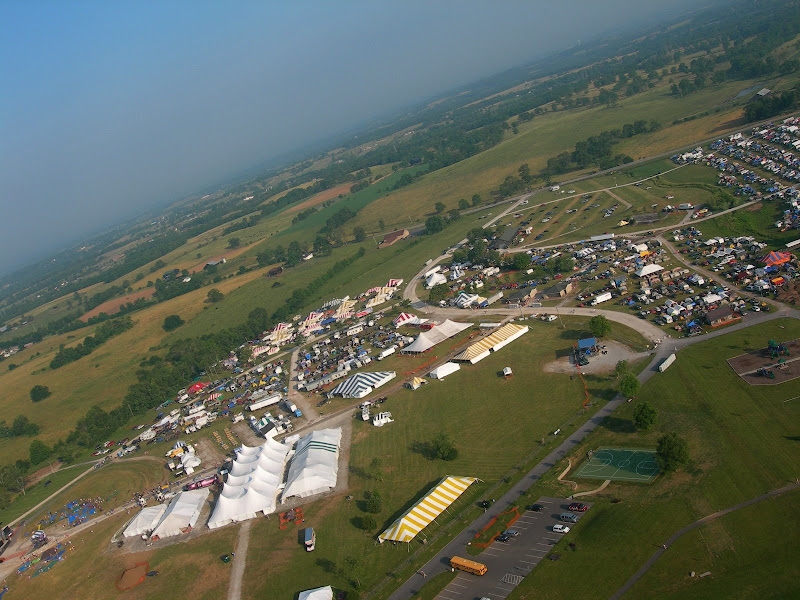 I have been taking photos via my RC airplane for about three years, and this year I decided to bring my plane along to get some shots. It is a small, foam park-flyer that runs off a large electric battery, so it is light-weight and safe. I atttach a regular digital camera (Nikon Coolpix 7900) and strap the shutter down in sports spectator mode so that it takes non-stop while I fly the plane. Conditions this year were a bit too windy for my plane to handle but I was able to get some decent shots, regardless. Sunday morning brought foggy conditions which are my favorite for aerial photos.